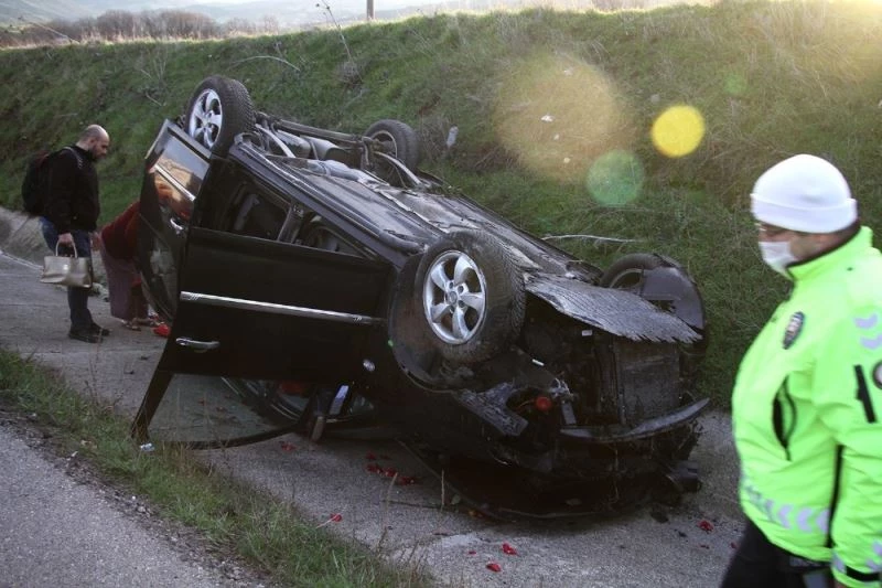 İzmir’den yola çıkarak Konya’ya kız isteme merasimi için seyir halinde olan bir ticari otomobil, Manisa’nın Kula ilçesinde kontrolden çıkarak takla attı. Yol kenarındaki şarampole düşen otomobilde, damat adayının anne ve babası yaralandı.