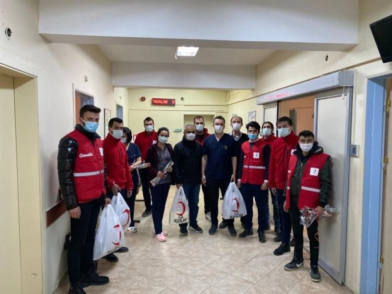 Kütahya ve Hisarcık Genç Kızılay tarafından Hisarcık Devlet Hastanesi sağlık çalışanlarına siperlik desteğinde bulunuldu.
