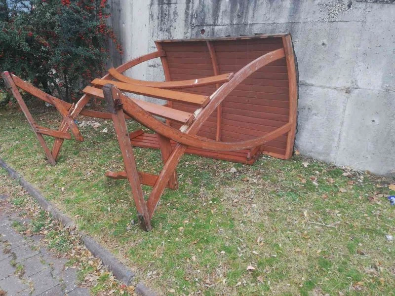 Alınan bilgiye göre, Kızılcahamam ilçesinde etkili olan fırtına ilçe merkezinde ve çeşitli bölgelerde bulunan konteynırlar, çardaklar yerle bir olurken, bina yüzeylerinde bulunan borular da yerinden söküldü.