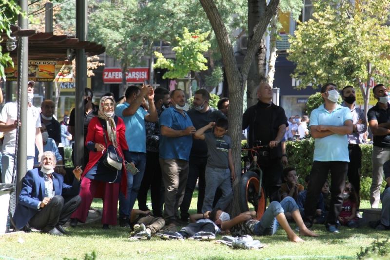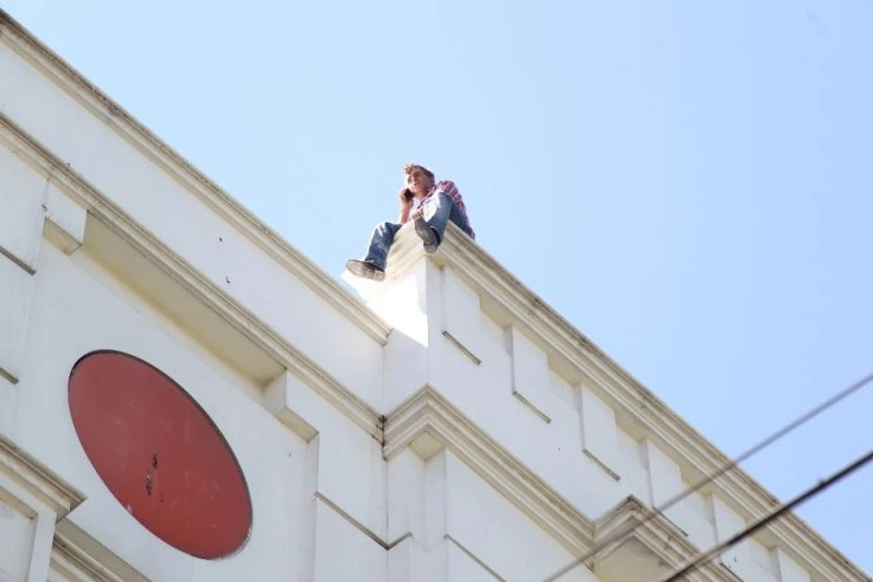 Öte yandan, intihar girişiminde bulunan şahsı, sosyal mesafe kurallarına uymadan meraklı gözlerle izleyen vatandaşların cep telefonuyla görüntü almaya çalışması dikkat çekti.