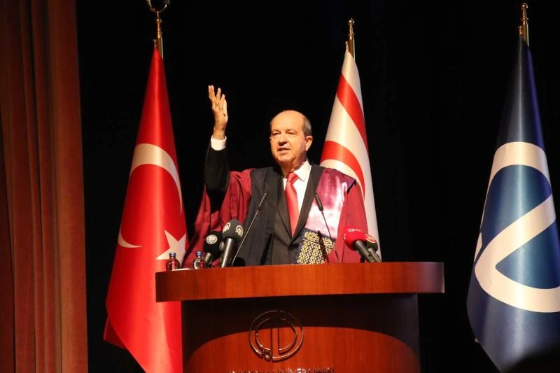 Anadolu Üniversitesi Senatosu’nun oybirliğiyle aldığı kararla Rektör Erdal tarafından KKTC Cumhurbaşkanı Ersin Tatar’a “fahri doktora unvanı” verildi. Programda, geleneksel açılış dersini veren Cumhurbaşkanı Tatar, Kıbrıs Türklerinin adadaki varoluş mücadelesini anlattı. Törendeki konuşmasında KKTC muhalefetini eleştiren Cumhurbaşkanı Tatar, “Oyunun ne olduğunu bilmek zorundayız. Tabi bunu zaman zaman televizyon ekranlarından hep birlikte izliyoruz. Televizyonlarda çeşitli haritalar gösteriyorlar, uzmanlar çeşitli değerlendirmeler yapıyor. Birtakım sinsi oyunlarla hepimiz karşı karşıya olabiliriz ama oyunun ne olduğunu bilmek durumundayız. Kuzey Kıbrıs Türk Cumhuriyeti’nden baktığımızda oyun böyle görülüyor. Orada da mücadelem devam ediyor, orada da muhaliflerim var. Halen daha federasyona inananlar var. Bunların başında eski Cumhurbaşkanı Mehmet Ali Talat ve son olarak Mustafa Akıncı ve onların adamları gelmektedir. Bana her türlü suçlamayı da yapıyorlar. Beni ’Ankara’nın papağanı’ olarak tanıtmaya devam ediyorlar. Beni dünya aleme şikâyet ediyorlar. Ben Türkiye’yi temsil eden bir kişiymişim, Kıbrıs Türk halkını temsil etmezmişim; ben bunu asla kabul etmem. Benim yüreğim elbetteki Kıbrıs Türk halkının hak ve çıkarlarını korumak. Bu hak ve çıkarları korurken Kuzey Kıbrıs Türk Cumhuriyeti’nin devamı için yapılan bütün çalışmalarda Türkiye Cumhuriyeti’nin de desteğine ihtiyacımız olduğunu her vesileyle söylüyorum. Aksi takdirde o adada Kıbrıs Türklerini yok etmek onlar için o kadar zor olmaz. Eğer Türkiye oradan çekilirse askeriyle, varlığıyla Avrupa Birliği içinde bizlerin o mücadeleyi vermemiz kolay olmayacaktır” dedi.