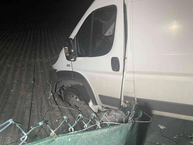 Kocaeli’nin Çayırova ilçesinde sürücüsünün direksiyon hakimiyetini kaybettiği minibüs, bir firmanın deposunun çatısına çarptı.
