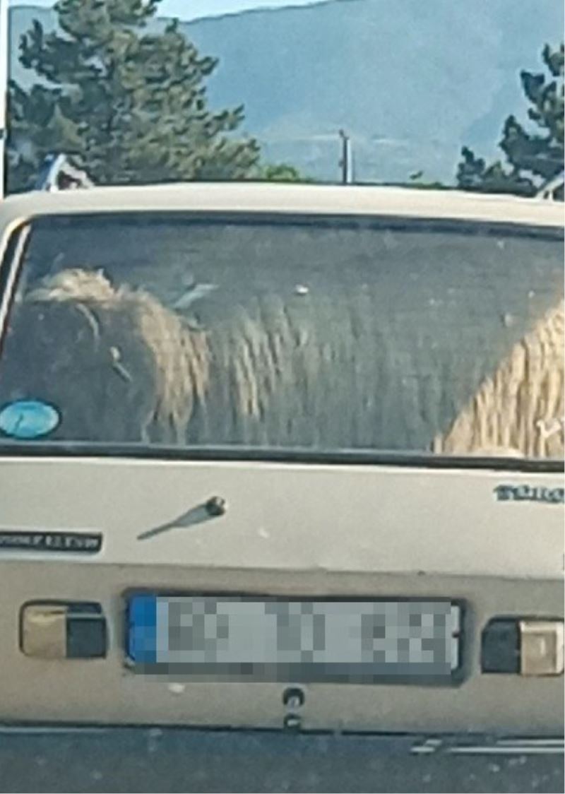 Tokat’ta, koçun otomobilin bagajında yolculuğu kameralara yansıdı.