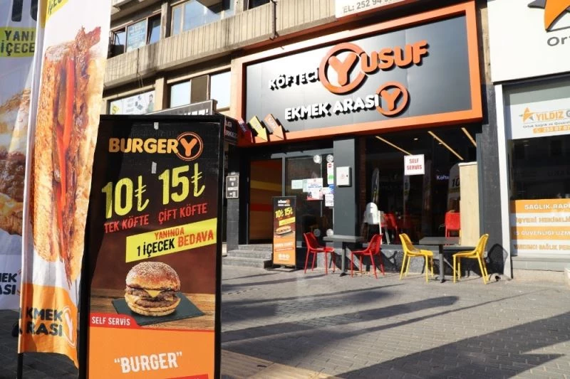 Bursa’da tüm Türkiye’ye yayılan ve dünyada birçok uluslararası zincir markalarla yarışır hale gelen Köfteci Yusuf geçtiğimiz yıl 50 milyon kişiyi ağırlarken, yeni konsept ekmek arası şubeleriyle de hizmet ağını genişletmeye devam ediyor. ‘Ekmek Arası Y’ şubelerinde burger, köfte ve döner 10 liraya satılırken içecek ise bedava olarak veriliyor.