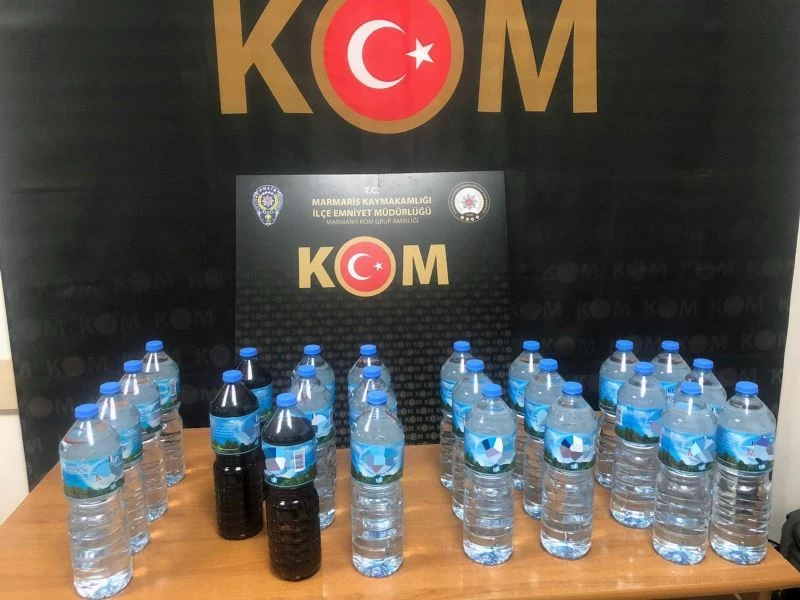 Marmaris KOM Grup Amirliği ekiplerinin istihbari çalışmalarında N.E. isimli şahsın araç ile piyasaya merdiven altı üretim şeklinde sahte alkol sürdüğü bilgisi üzerine şahsın alkol üretimi yaptığı yeri tespit etmek için fiziki takip başlattı.