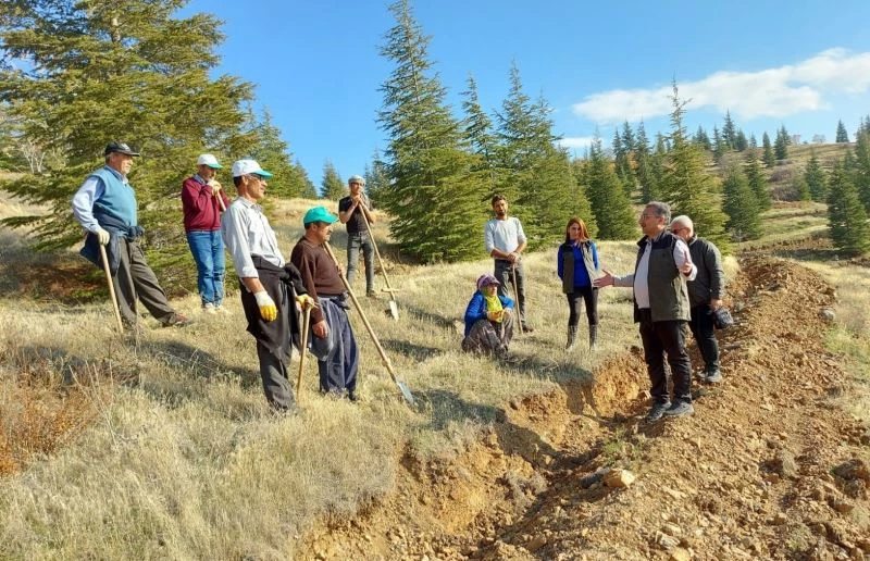 Alandaki fidan dikim çalışmalarını yerinde inceleyen Elazığ Orman Bölge Müdürü Muhammed Salih Çetiner de bölgede fidan dikti.
