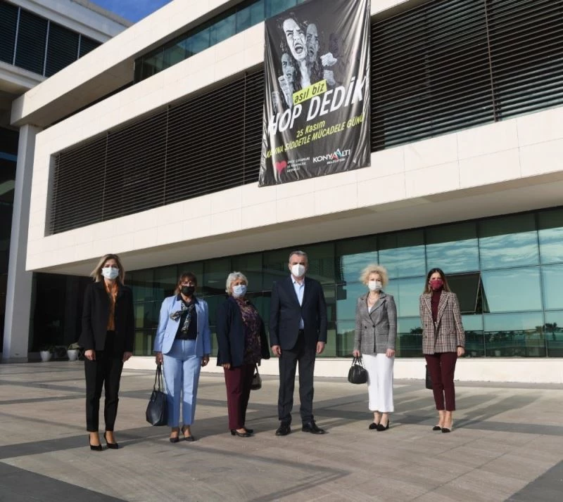 Birleşmiş Milletler, 1999 yılında 25 Kasım tarihini, ‘Kadına Yönelik Şiddetin Ortadan Kaldırılması İçin Uluslararası Mücadele Günü’ olarak ilan etti. Konyaaltı Belediyesi de 25 Kasım Kadına Şiddetle Mücadele Günü’nde farkındalık oluşturmak amacıyla belediye binasına ‘Asıl Biz Hop Dedik’ pankartı astı. Konyaaltı Belediye Başkanı Semih Esen de ‘Önce Çocuklar ve Kadınlar Derneği’ üyeleriyle bir araya geldi. Başkan Semih Esen, konunun tekrar gündeme gelmesinin bir taraftan sevindirici, ancak bir çözüm bulunamaması noktasında da üzüntü verici olduğunu söyledi.