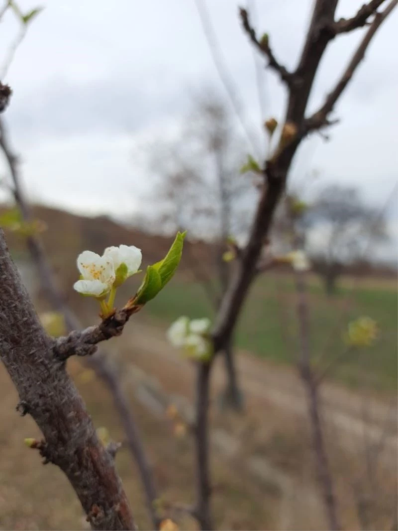 Konya’nın Beyşehir ilçesinde, kış mevsimde erek ağacı çiçek açtı.