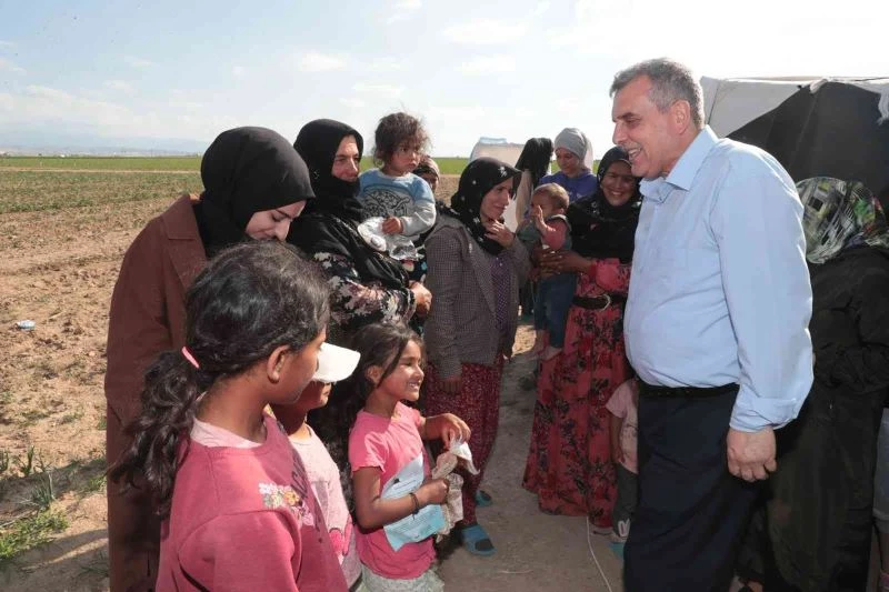 Kendilerini ziyaret eden Şanlıurfa Büyükşehir Belediye Başkanı Zeynel Abidin Beyazgül ile kucaklaşan Şanlıurfalı tarım işçileri memleket hasreti giderdi.