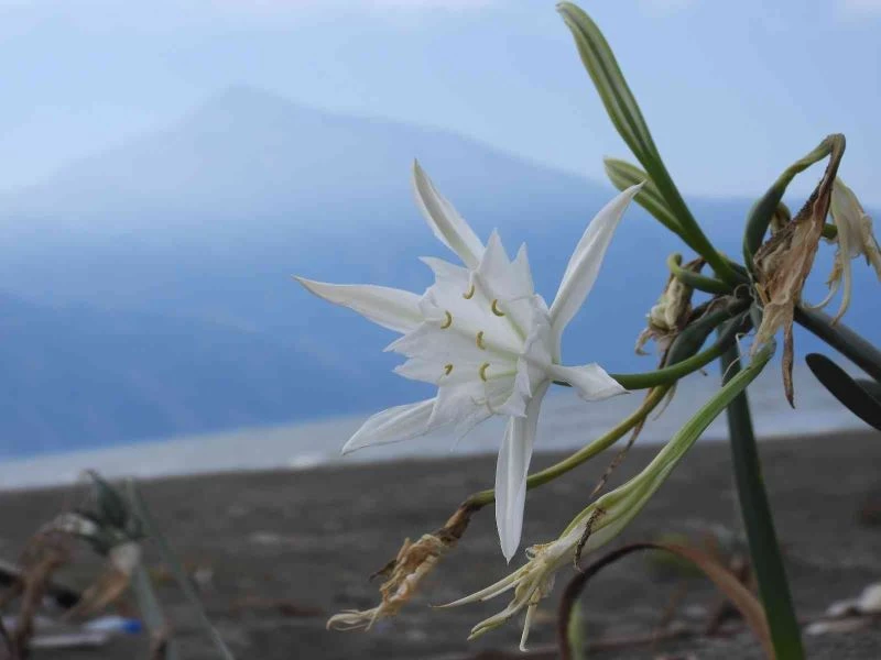 Hatay’ın Samandağ ilçesinde 14 kilometrelik uzunluğa sahip kumsalda çiçek açan kum zambakları görsel şölen oluşturdu.