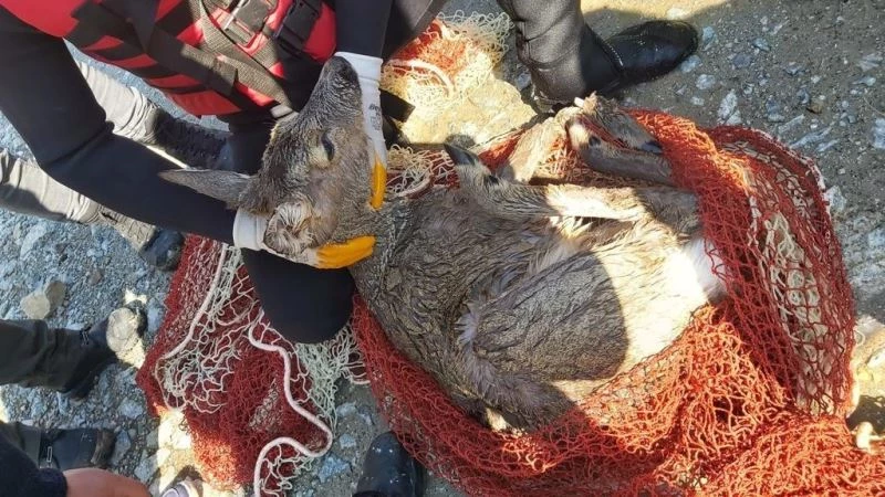 Köpeklerden kaçarken dereye düşen karaca için seferber oldular