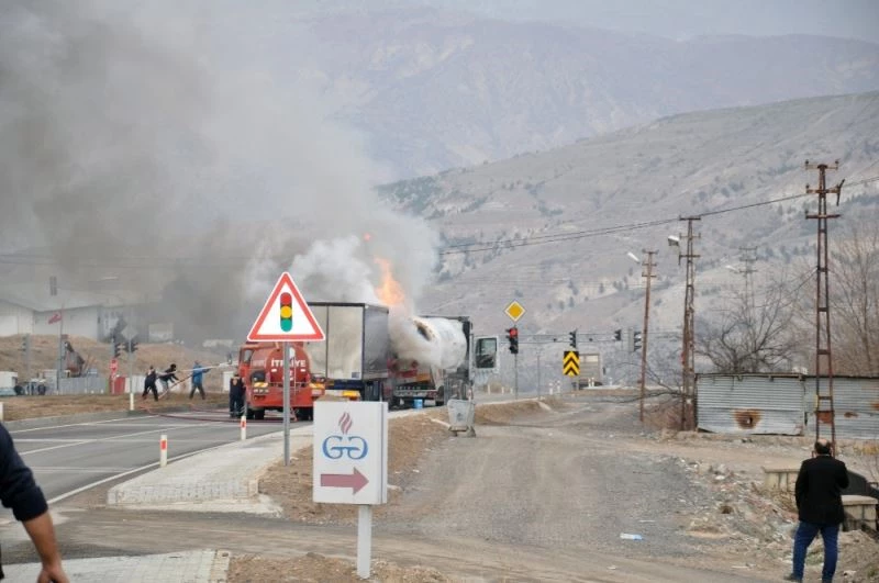 Sivas’ın Suşehri ilçesinde PVC yüklü tırla, LNG tanklı tankerin çarpıştığı kaza sonrası çıkan yangın paniğe neden oldu. Korkutan yangın, itfaiye ekiplerinin 2 saat süren çalışmasıyla kontrol altına alındı.