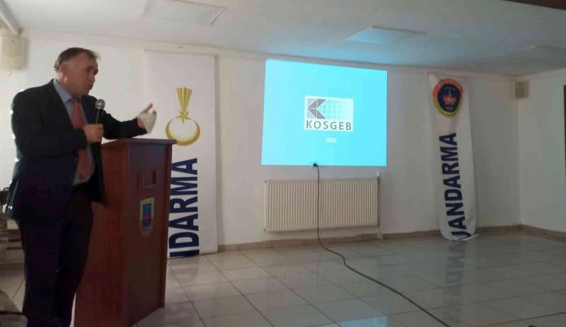 Proje kapsamında İl Jandarma Komutanlığına destek sunan KOSGEB Müdürlüğü, çalışma yaşamı başlığı altında devlet tarafından sunulan tüm imkanları ve bilinmeyenleri askerlerle detaylı olarak paylaştı.