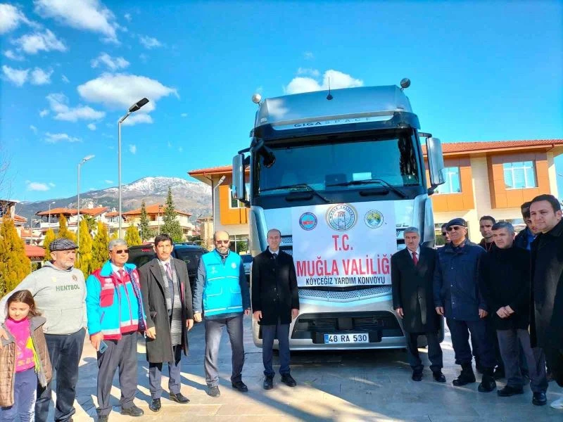 Muğla’nın Köyceğiz ilçesinde deprem bölgesine ulaştırılmak üzere toplanan yardımlar TIR’a yüklenerek gönderildi.