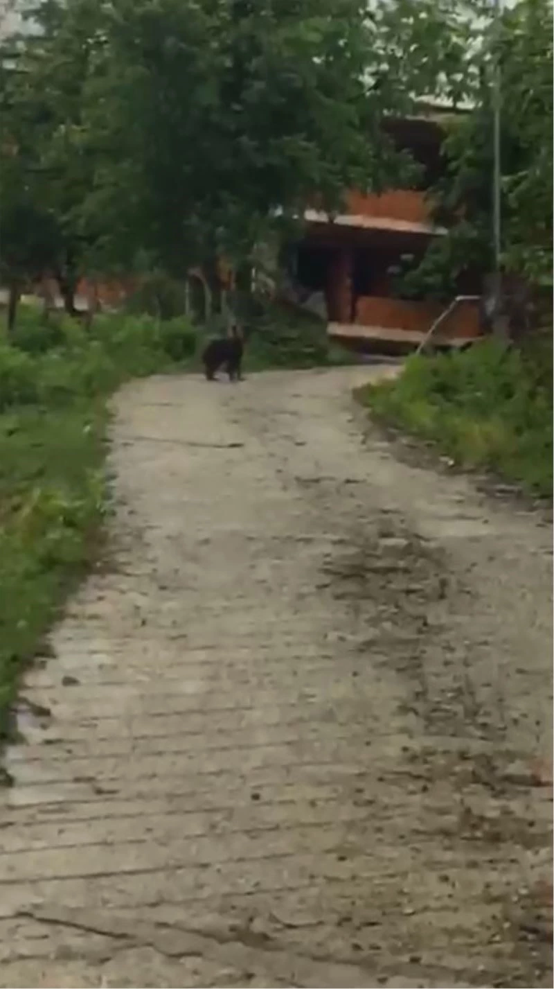 İlçeye bağlı Direkli Köyü Kilisearkası Mahallesi’nde yaşayan Cemil Ünal, köye ayı yavrusu indiğini gördü. Arkadaşıyla birlikte ayı yavrusuna yaklaşan Ünal, cep telefonu kamerasıyla o anları görüntüledi. Yanına çağırdığı ayı yavrusu bir süre sonra bölgeden uzaklaştı.