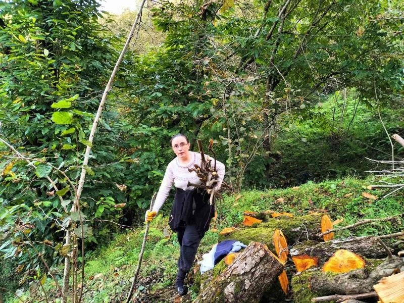 Kış hazırlığı yapan köylülerden Seher Yüksel, “Yeri gelince yağmurda kayan ve dik bahçede ya da derelerde odun taşıyoruz. Çok zor ama mecburuz. Odun olmazsa kışı zor geçiririz. Doğalgazlı evimiz olmadığı için mecburen soba kullanıyoruz. Oğlumla yaşıt sobam var. Tam 21 senedir ailecek soba kullanıyoruz ve odun taşıyıp yakıyoruz. Çeşitli ağaçlar, meyve ve fındık dalı yakıyoruz” dedi.