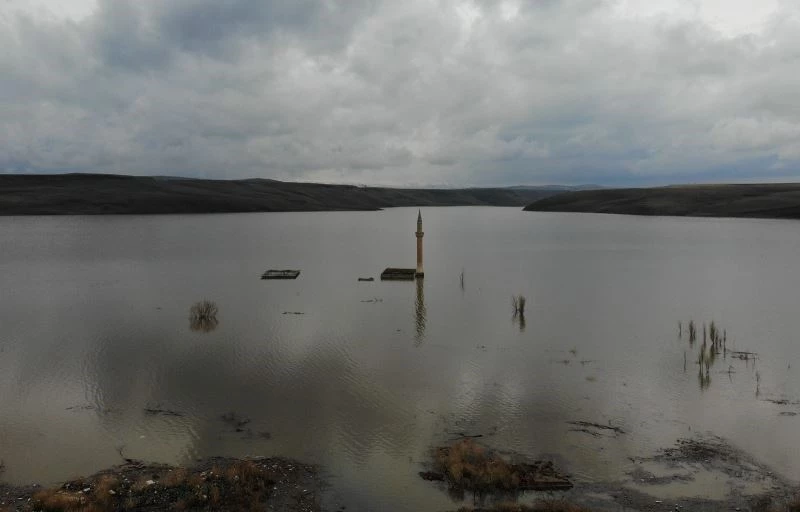 Kars’ta, 47 bin 578 hektar tarım arazisini sulayacak Kars Barajı’nın yeniden su tutmasıyla birlikte sular altında kalan Boğazköy ve Çamçavuş köylerinde geriye sadece cami minareleri kaldı.
