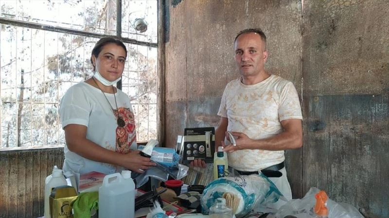ADANA (AA) - Adana'nin Kozan ilçesinde 23 Agustos'ta çikan ve 25 Agustos’ta kontrol altina alinan orman yangininda is yeri yanan Erol Ganici'ye Kozan Kuaförler ve Berberler Odasinca malzeme desteginde bulunuldu.