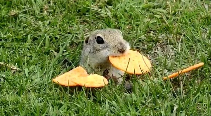 Tunceli kırsalında çekim yapan doğa fotoğrafçısı Ayhan Özdemir, bir sincap yuvasına denk geldi. Ardından Özdemir yuvanın önüne kraker bıraktı. Yuvasından çıkan sincap bırakılan krakerleri yemeye başladı. Özdemir ise o anları görüntüledi. Bir süre krakeri yiyen sincap, daha sonra yuvasına geri girdi.