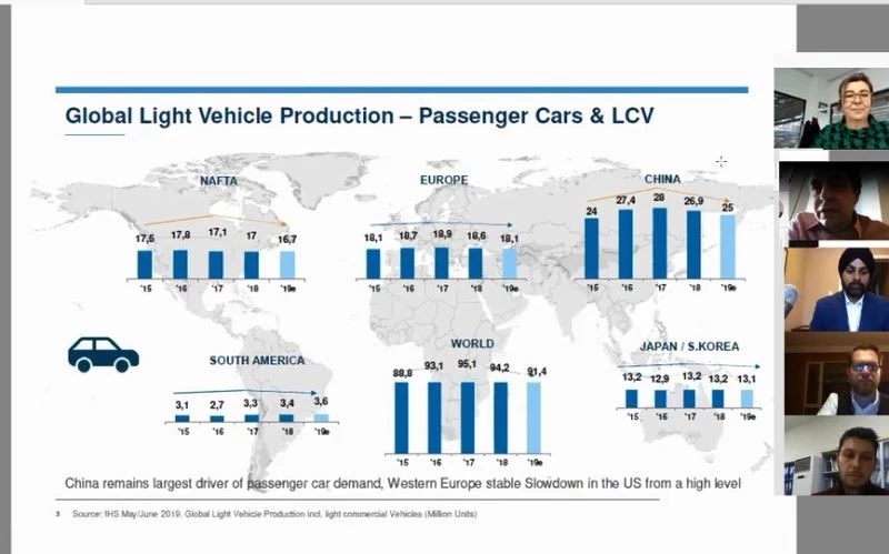 Toplantının moderatörü FEV Asya Başkan Yardımcısı Taner Göçmez, organizasyonu düzenlediği için Konya Sanayi Odası’na teşekkür ederek, "Konya Sanayi Odası’nın çalışmalarını yurt içinde ve yurt dışında herkes çok takdir ediyor. Gerçekten sürekli bir liderlik var. Hepimiz görüyoruz. Başarılar diliyorum" dedi. Pandeminin otomotiv sektörüne etkilerini aktaran Göçmez, "Bu yıl, yüzde 20 ile yüzde 40 arasında binek araç pazarında düşme söz konusu. Bu otomotiv sektörü için ciddi bir rakam. Bu etki, tedarik zincirindeki herkese yansıyor. Sektör çok ciddi bir şekilde sürecin normale dönmesini bekliyor" dedi.