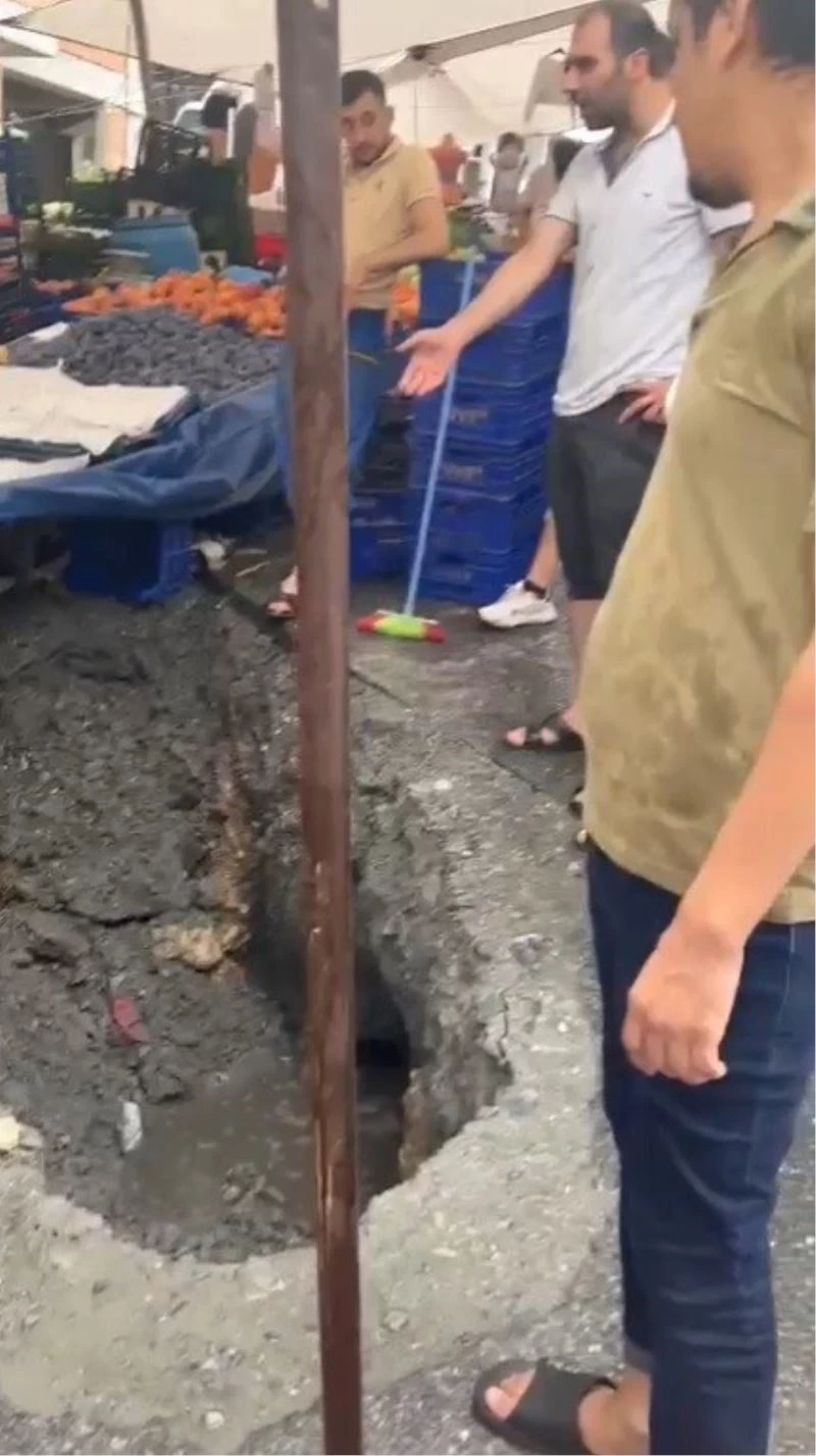 Küçükçekmece’de sağanak yağış nedeniyle pazarın içindeki yol çöktü