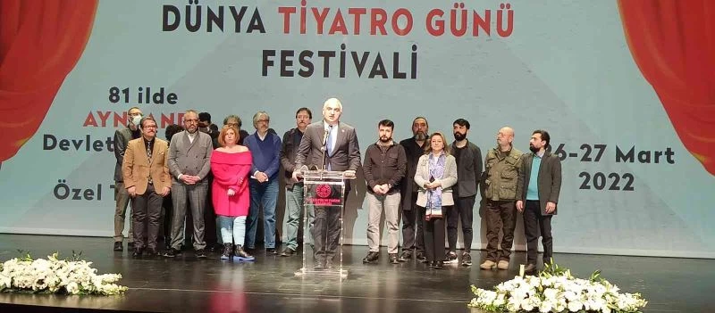 AKM’de konuşan Kültür ve Turizm Bakanı Mehmet Nuri Ersoy, “27 Mart Dünya Tiyatrolar Günü için özel bir çalışma yaptık. Türkiye’nin 81 vilayetinde hem devlet tiyatroları, hem de özel tiyatrolarla dolu dolu iki gün geçirmeye karar verdik. Özel tiyatrolarını sergilemek isteyenler bize başvuru yaptı ve toplam 385 başvuru oldu bunların içerisinden 86 tanesini seçtik. 17 tanesi çocuk tiyatrosu, 69 tanesi normal tiyatro jürimiz tarafından seçildi. 26-27 Mart’ta devlet tiyatroları ile birlikte performans gerçekleştirecekler. Bu 2 gün içerisinde devlet tiyatrocuları ile birlikte toplam 198 performans gerçekleştirilecek. Beyoğlu Kültür Yolu Festivali’de 28 Mayıs’ta başlıyor. Başkent Kültür Yolu ile beraber iki festival aynı anda yapılacak. Bu festivallerde tiyatroların geniş şekilde yer almasını istiyoruz. Özel tiyatrolarımızın salonlarına enerji desteği vereceğiz. Covid-19 pandemisinde ağırlıkta olarak can kaybı 65 yaş üzerinde olduğu için tiyatro yapısı gereği maskesiz ve sosyal mesafeye uygun olmadığı için bu karar alındı. Bu geçici bir uygulama vaka sayıları da aşağı doğru iniyor. 1 Mayıs’a kadar herhalde bu uygulamaya son verilecek diye düşünüyorum. Zaten bizde kadrolu olan 60 yaş üstü oyuncularımıza da çok nadiren izin veriyoruz. Ama 1 Mayıs’a kadar bu uygulama devam edecek, vaka sayılarının aşağı düşmesiyle tekrar eski uygulamaya dönülecek” diye konuştu.