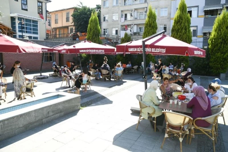 Samsun Büyükşehir Belediyesi, kadınlar başta olmak üzere ailelerin sosyalleşmelerine yönelik Kadın Aile ve Sosyal Hizmetler Daire Başkanlığı bünyesinde hizmet veren Kadıköy Mahallesi Kültür ve Yaşam Evi’ne, çay bahçesi açtı. Çayların ücretsiz verildiği alana, sadece aileler alınıyor.