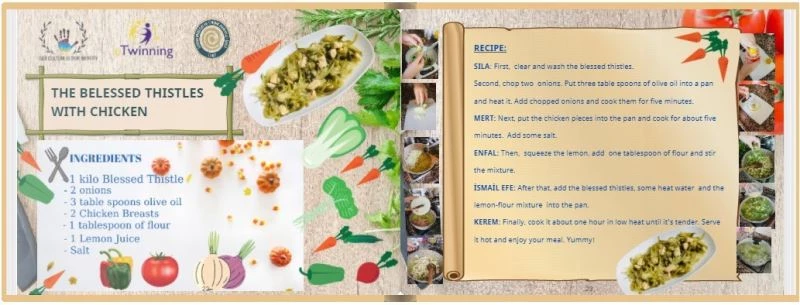 Proje kapsamında, dünyanın pek çok ülkesinden proje ortağı olan okulların, kendi yörelerine ait değişik yemeklerin yer aldığı ortak bir yemek kitabı hazırladıklarını belirten Meryem Hacıyaman, “Cunda Mesleki ve Teknik Anadolu Lisesi etwinning proje grubu öğrencileri de Ayvalık yöremizin, bahar aylarında yapılan meşhur yemeklerinden biri olan ‘Tavuklu Akkız’ yemeğini hazırlayıp, pişirdiler. Yemeğe ait fotoğraf, video, içerik kısmı ve yemeğin yapılışının sesli kaydını oluşturdular. Tüm bu çalışmalar, yurtiçi ve yurtdışından birçok Avrupa ülkesinden okulların çalışmalarının yer aldığı bu yemek kitabında yayımlandı. Okulumuz öğrencileri, okulumuzu ve Ayvalık’ımızı en iyi şekilde temsil etmekten dolayı haklı bir gurur yaşamaktadırlar.” diye konuştu.