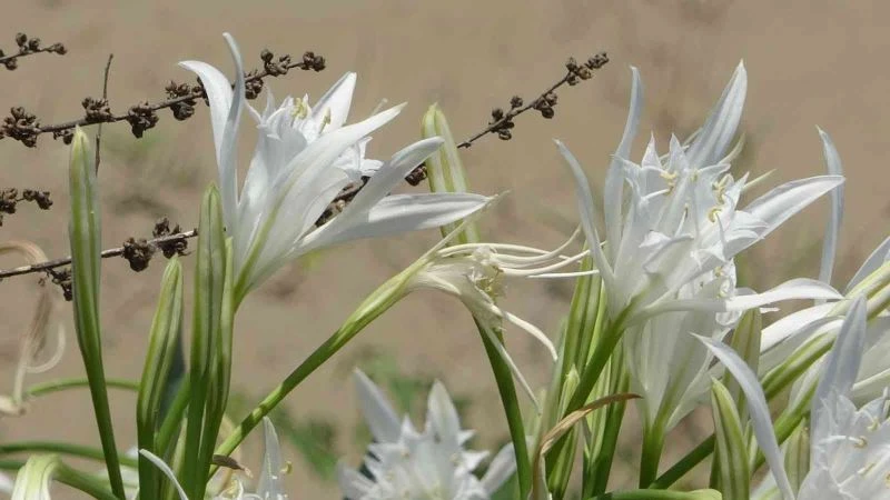 Nesli tehlikede olduğundan koruma altına alınan endemik bitki türü kum zambakları çiçek açtı. Bembeyaz güzelliğiyle dikkat çeken bu bitkiyi soğanından koparmanın cezası ise 109 bin 593 TL.