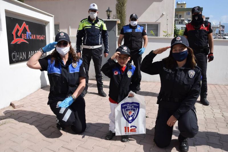 ANTALYA (AA) - Kumluca Emniyet Müdürlügü Toplum Destekli Polislik Büro Amirligi ile Kaymakamlik Vefa Sosyal Destek Grubunda görevli polisler, 23 Nisan Ulusal Egemenlik ve Çocuk Bayrami dolayisiyla sürpriz yaptigi iki çocugu mutlu etti.
