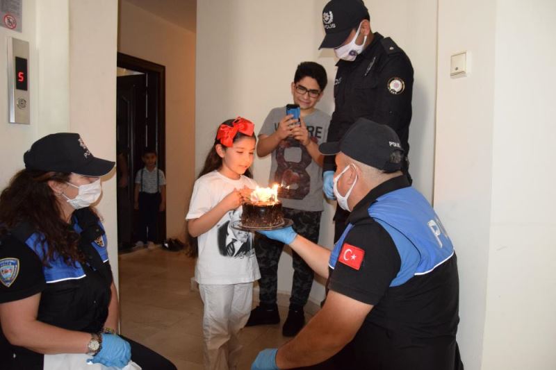 Polis ekipleri ardindan Meydan Mahallesi'nde yasayan 8 yasindaki Bade Nur Yilmaz'in evine giderek burada yas pastayla çocugun dogum gününü kutladi.