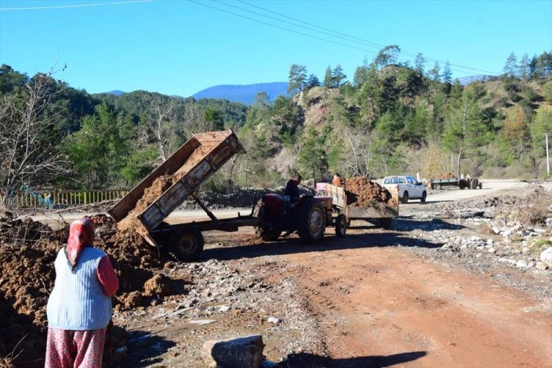 Vatandaşlar, kendi traktörleri ve Kumluca Orman İşletme Müdürlüğü ekiplerinin de destekleriyle yolu onararak ulaşıma açtı.