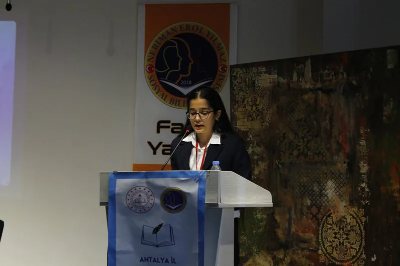 Kumluca Havva Sedat Avcıoğlu Fen Lisesi 9. sınıf öğrencisi Ferahnaz Karakuş, etkili sunumu ve özgün bakış açısıyla jüri üyelerinden en yüksek puanı alarak birinciliğe layık görüldü.