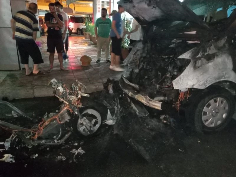 Kundaklanan motosiklet, servis minibüsünü de yaktı