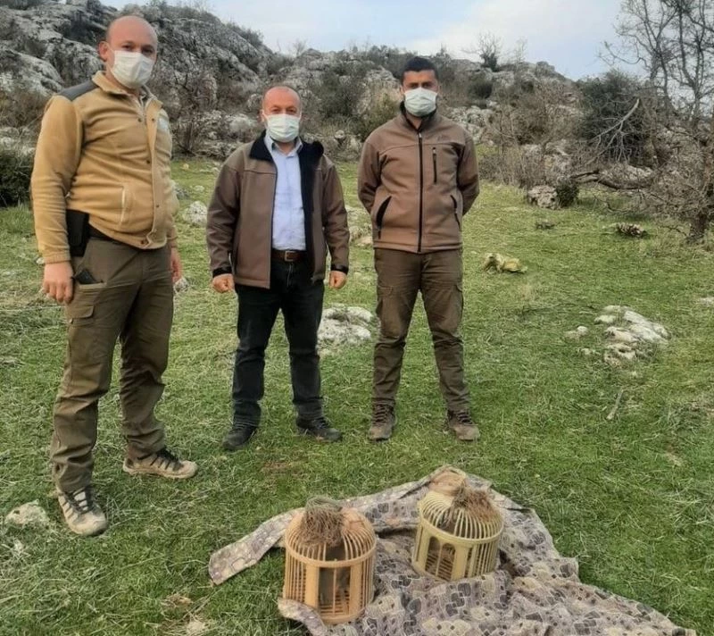 Kahramanmaraş’ın Pazarcık ilçesinde kurakçılık yöntemiyle yasadışı olarak keklik avlayan 2 kişi yakalandı.