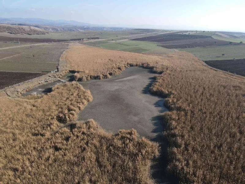 Çorum’da Türkiye’nin sayılı ’kuş cennetleri’ arasında yer alan Gölünyazı, tamamen kurudu. Bataklığa dönüşen Gölünyazı havadan görüntülendi.