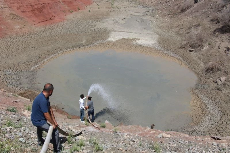 Erzurum’da kuraklık sebebiyle kuruyan göllerde bulunan ve can çekişen balıklara ekipler tarafından can suyu verildi.