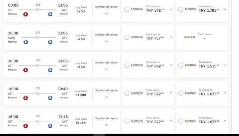 Kurban Bayramı tatilini memleketlerinde veya tatil yörelerinde geçirmek isteyen vatandaşlar havayollarına akın edince bilet fiyatları tavan yaptı. Artan talep nedeniyle İstanbul-Antalya arasında bir kişi ekonomi tek yön gidiş bileti 399 lira ile 872 lira arasında satıldı. Bir kişi tek yön Business bilet ise bin 362 lira ile bin 785 lira arasında satıldı.