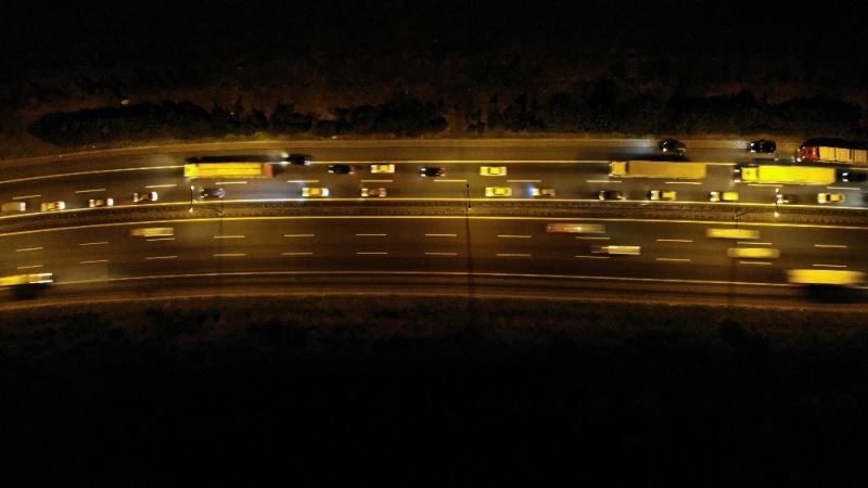 Trafiğin zaman zaman durma noktasına geldiği TEM Otoyolu havadan görüntülendi.