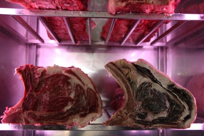 Dry aged işlemi hakkında bilgi veren Etevim Steakhouse işletmecisi Servet Keskin, etin bu yöntem ile daha lezzetli ve yumuşak olduğunu belirtti. Dana filetosunu parçalamadan getirenlere ücretsiz bir şekilde hizmet verileceğini sözlerine ekleyen Keskin, “Et, porsiyonlanmadan karkas halinde 0 derece sıcaklık ve yüzde 80 nem oranı bulunan özel dolaplarda 28-30 güne kadar dinlendiriliyor. Dinlendirme sonrasında et hem daha yumuşak bir hal alıyor, hem de daha lezzetli oluyor. Yumuşak olmasının nedeni dinlendirme sırasında etin içindeki enzimlerin etteki kas liflerini parçalayarak etin çiğnenmesini daha kolay hale getirmesi oluyor. Lezzetli olmasının nedeni ise dinlendirme sırasında protein moleküllerinin parçalanıp aminoasitlere dönüşmelerinden kaynaklanıyor. Yani tamamen doğal. Biz Eskişehirli hemşerilerimize Kurban Bayramı’nda dry aged hizmetini vermeye başlıyoruz. Dana filetosunu parçalamadan bize getirdiklerinde 28 güne kadar özel dry aged dolaplarda dinlendiriyor, sonrasında istedikleri kalınlıkta keserek porsiyonlayıp veriyoruz” ifadelerini kullandı.