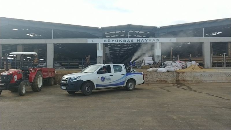 Bursa Büyükşehir Belediyesi Sağlık İşleri Dairesi Başkanlığı ekipleri kent merkezinin yanı sıra Büyükşehir belediyesi sınırları içinde kalan tüm ilçelerde kurulan kurbanlık satış alanlarında ve adaklık kurban satım yerlerinde karasinek ve diğer haşerelere karşı ilaçlama çalışmalarını aralıksız sürdürüyor.
