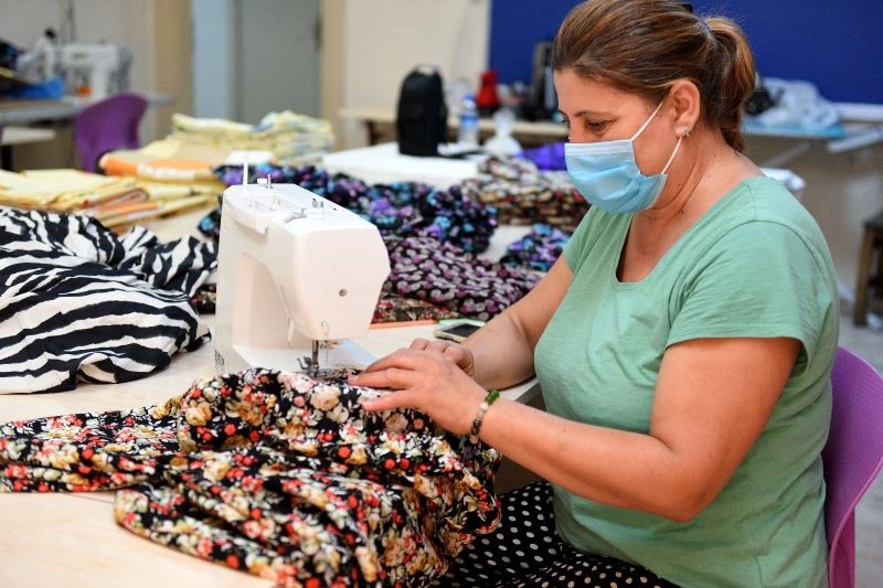 Bunun için harekete geçen kadınlar, Halk Eğitim Merkezi’nin de desteğiyle metrelerce şalvar dikimine uygun basma ve nevresim kumaşını bağış olarak toplandı. Toplanan kumaşlar Muratpaşa Belediyesi’nin kurs merkezine getirildi. Kursta, Halk Eğitim Merkezi öğretmenleri, şalvarın nasıl dikileceğini, yastık kılıfı ve çarşafıyla nevresim takımının nasıl hazırlanacağı anlattı. Ardından kursta hummalı bir çalışma başladı. Bir yanda kumaşlar kesilip dikime uygun hale getirilirken diğer yanda iğnelere iplikler geçirildi ve dikiş makineleri çalışmaya başladı.