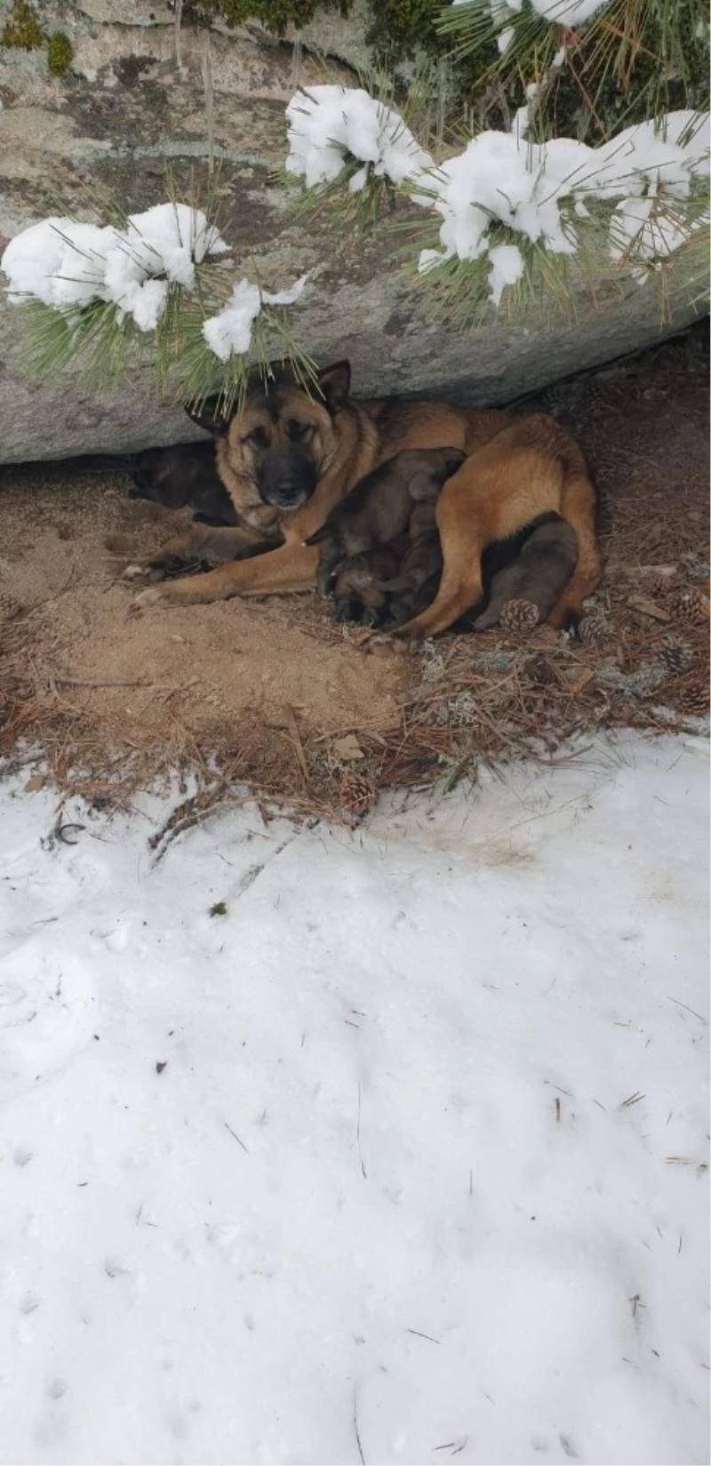 Kurt köpeği yavruları donmaktan son anda kurtarıldı