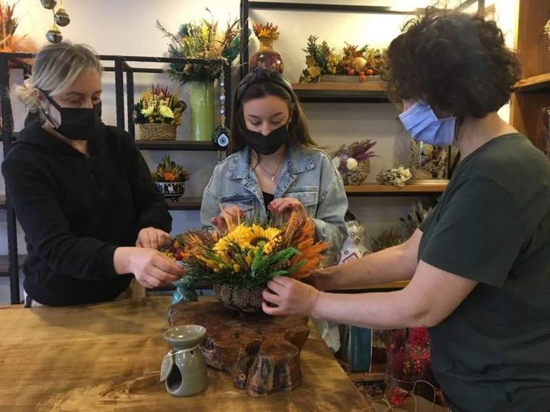 Annesi Figen Us ve teyzesi Esra Erdoğan’ın emekli olmasıyla bu işe girdiklerini söyleyen Zeynep Us, “Özellikle pandemi döneminde bir şekilde hobilerini işe çevirmek adına kadın girişimci olarak bu işe adım attılar. Evde çiçekler ve süsler yapıyorlardı” dedi.