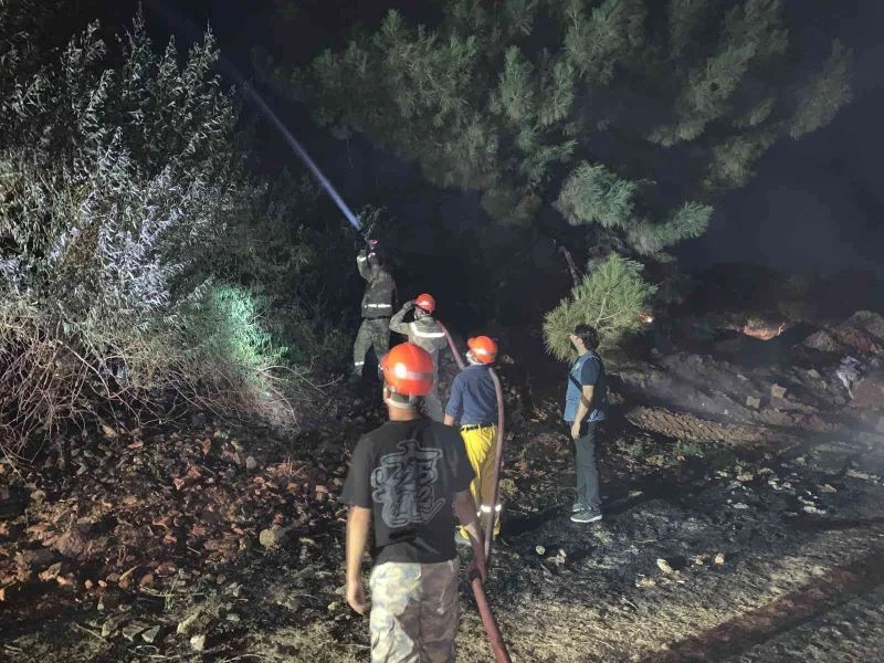 Kuru otların tutuşmasıyla başlayan yangın ormana ulaşamadan söndürüldü