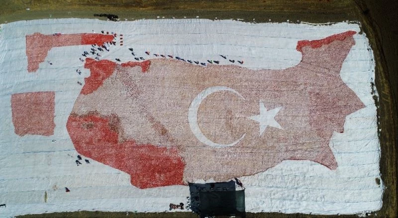 Kurutmalık domateslerle hem Elazığ haritası, hemde ay-yıldız oluşturuldu