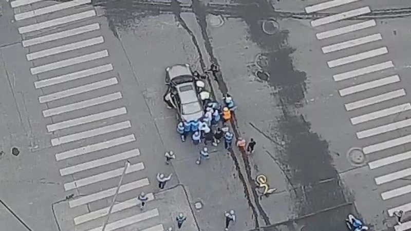 Çin’de aracın altında kalan kadını kurtarabilmek için kuryeler seferber oldu.