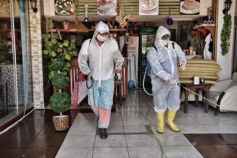 Kuşadası Belediyesi ekipleri koronavirüs salgını nedeniyle uzun süre kapalı kalan ve 1 Haziran’da açılacak olan mekanların dezenfeksiyon işlemini gerçekleştiriyor. Dezenfeksiyon işlemi Kuşadası merkezi ile Davutlar ve Güzelçamlı ile tüm mahalleler olmak üzere ilçe genelinde yeni normalleşme süreciyle birlikte açılacak olan kreş, lokanta, kahvehane, spor tesisi gibi mekanların tamamında yapılıyor.
