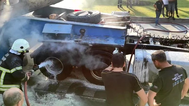 Olay, Kuşadası Sanayi Sitesi ışıklarında saat 16.30 sıralarında meydana geldi. Edinilen bilgiye göre, üzerinde iş makinesi bulunan 41 AFU 177 plakalı çekicinin ışıklara geldiği sırada lastiği patlaması sonucu çekicide yangın çıktı. Çekiciden dumanların çıktığını fark eden vatandaşlar durumu 112 Acil Çağrı Merkezi’ne bildirdi. İhbar üzerine bölgeye itfaiye ve polis ekipleri sevk edildi. Hızla olay yerine gelen Aydın Büyükşehir Belediyesi İtfaiye Daire Başkanlığı ekipleri yangına müdahale ederek söndürürken, yaşanan olay nedeniyle çekicinin bulunduğu güzergahta trafik polis ekipleri tarafından bir süre trafiğe kapatıldı. Yangında çekicide küçük çapta maddi hasar meydana gelirken, çekicinin olay yerinden kaldırılmasıyla trafik yeniden normale döndü.