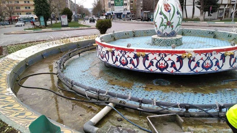 Kütahya’nın simgesi olan Zafer Meydanı’nda yer alan Vazo’da, detaylı bir temizlik çalışması yapılıyor.
